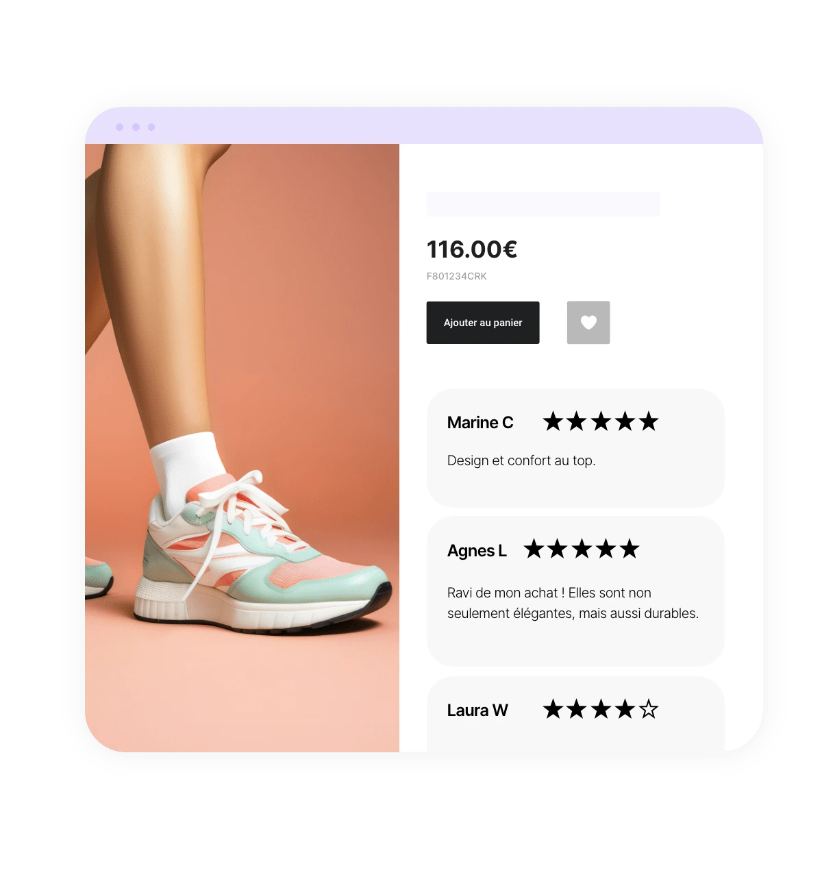 Condividi le opinioni dei tuoi clienti su larga scala e approfitta dei vantaggi della dicitura “Recensioni Verificate”. Attiva le recensioni su tutti i tuoi canali online (sito web, piattaforme di recensioni di terze parti, social media, ecc.) e offline (spot in TV, punti vendita, campagne pubblicitarie, ecc.). Le possibilità sono infinite!