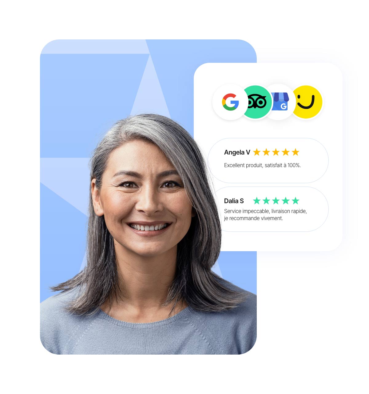 Libera il potenziale delle recensioni clienti, ovunque e per chiunque! Ottimizza la visibilità delle tue recensioni pubblicandole su tutti i tuoi siti web e conquista i mercati globali grazie alla funzione di traduzione automatica!